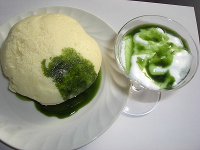 希少糖を含み、合成着色料や保存料を使用せず、鮮やかな緑色の抹茶でシロップを作りました。